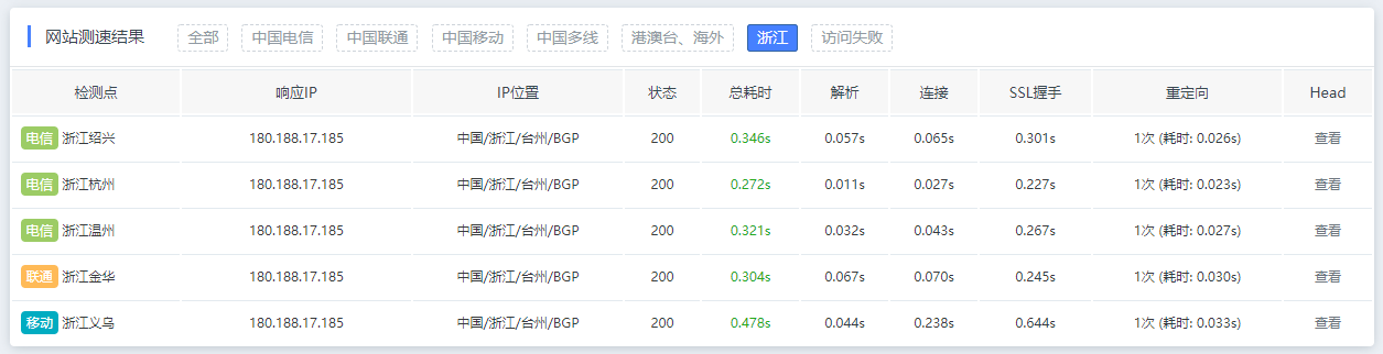 由于移动云(ecloud.10086.cn)内部维护的黑名单系统中,被拉黑的IP越来越多,逐渐失去网络监测的作用,现ITDOG已下架所有移动云的监测点,并用同地点移动线路节点替换,不会再出现个别IP的移动线路测试结果与其他平台移动线路测试结果不一的情况;另外,根据用户的反馈和建议,单次测试的结果地图中,鼠标放置于区块后将显示此区块所有的监测点记录,而不是像之前一样只显示一个记录,同时还可以点击地区区块,快速筛选出指定区块的测试结果;
